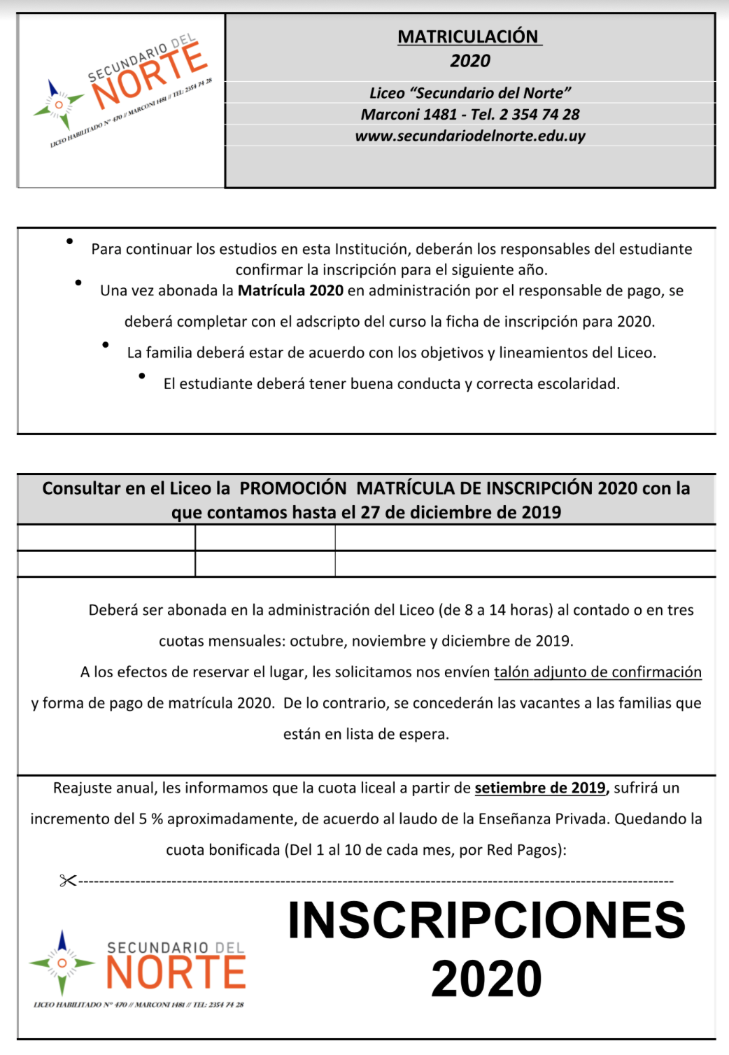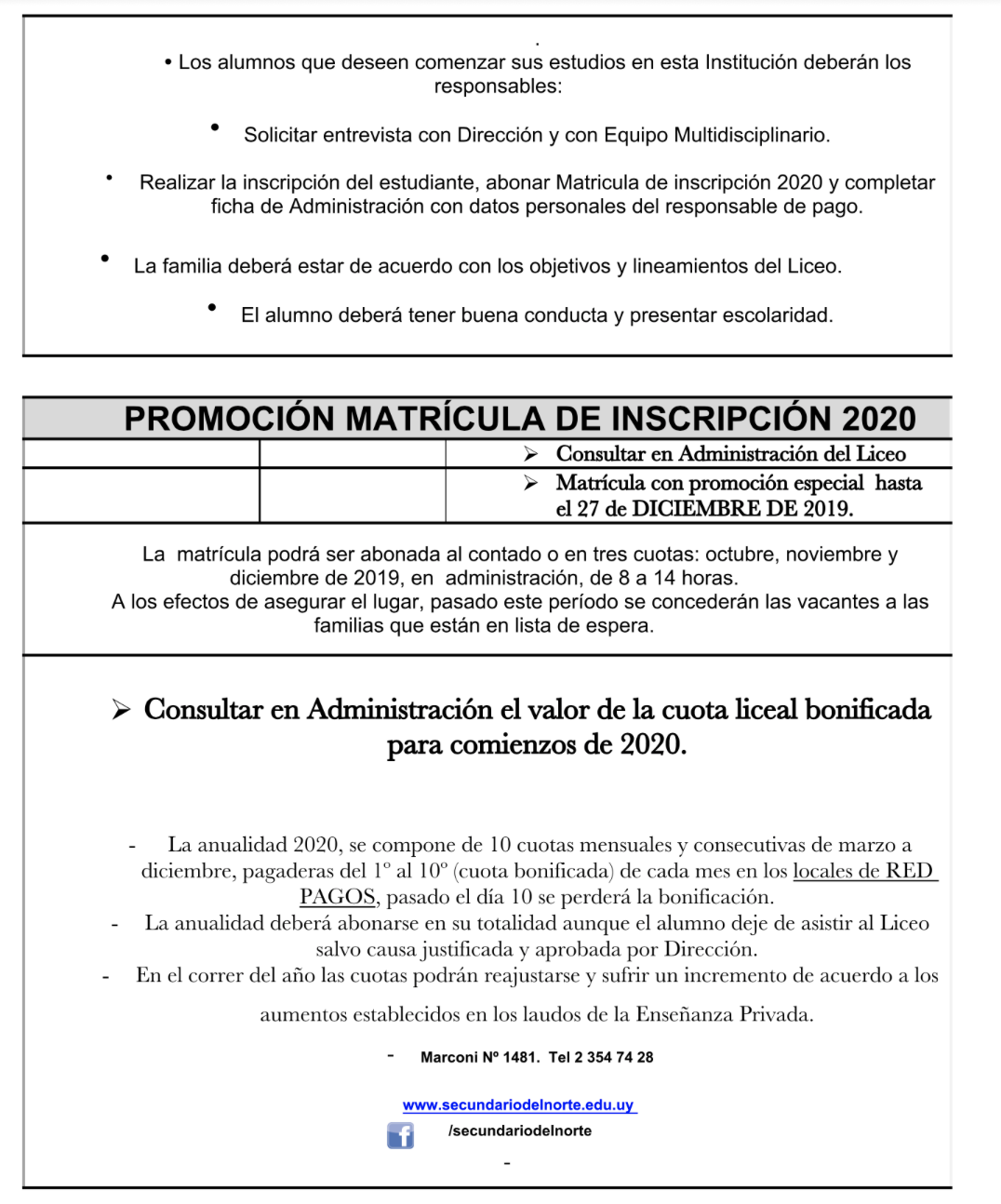 La reunión de padres para Primer Año de Ciclo Básico se realizará el día 28 de febrero a las 19:00 horas.